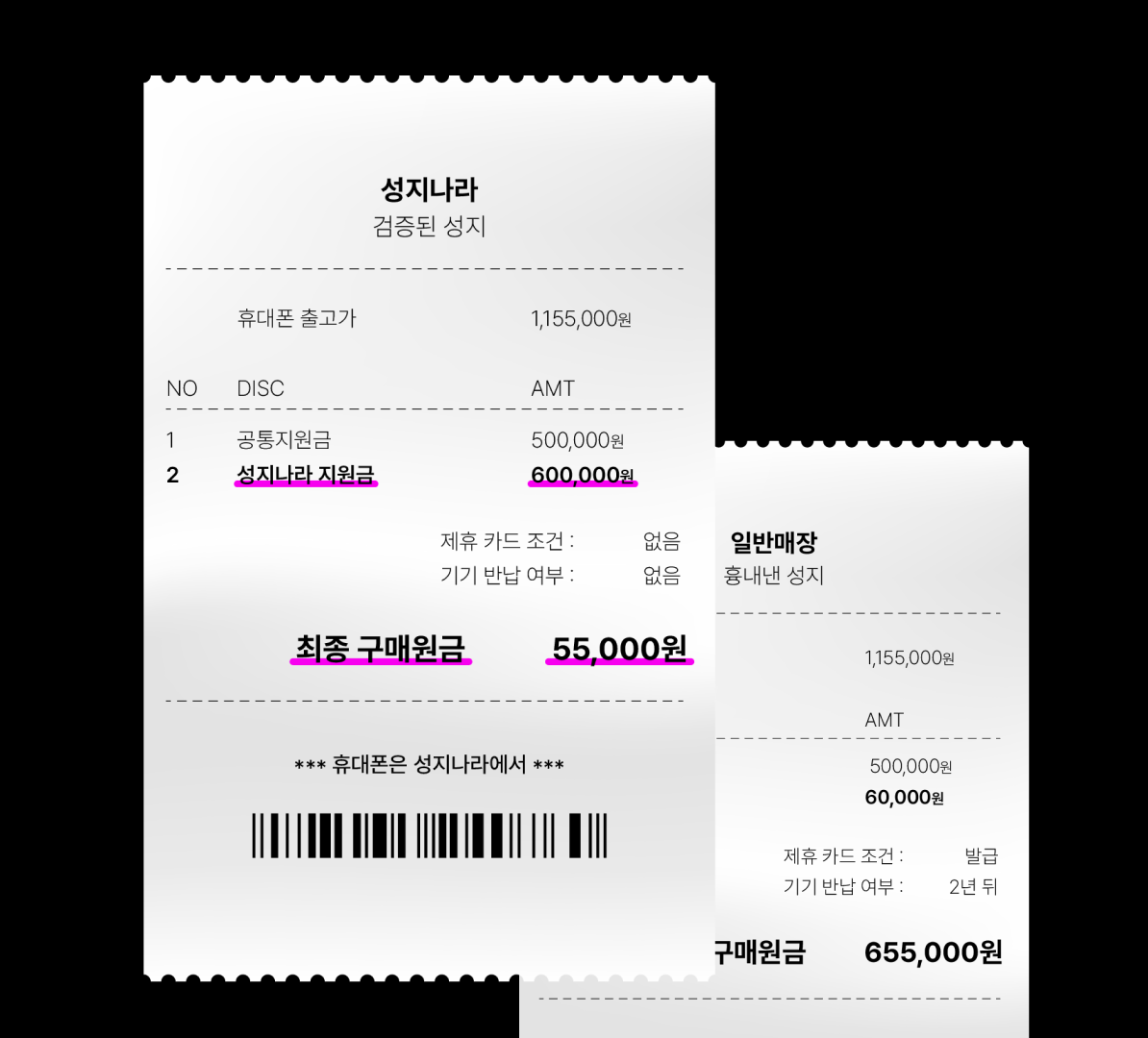 휴대폰 성지에서는 일반 대리점에서는